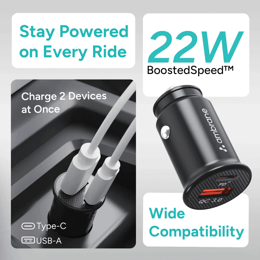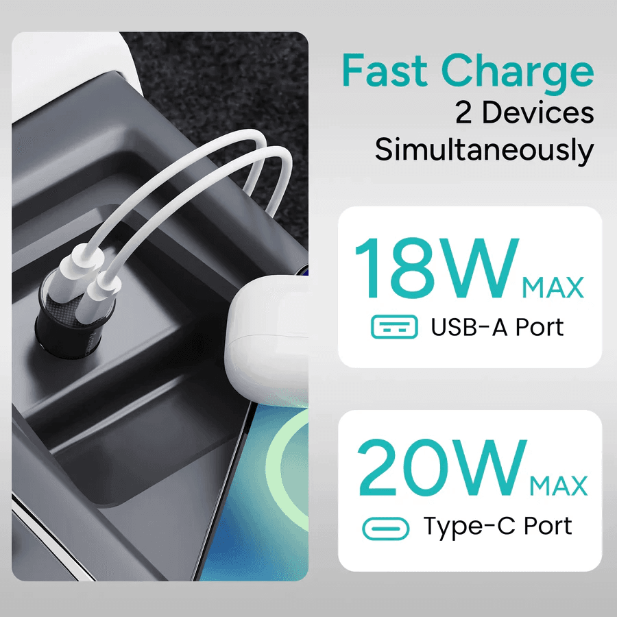 - Dual Charging: Charge up to 2 devices at once, perfect for sharing power with your passengers.