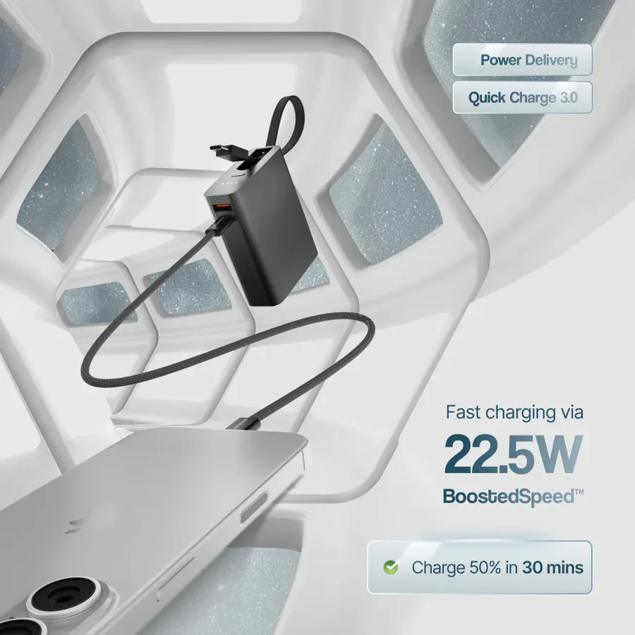 - Fast Charging: Supports up to 22.5 W BoostedSpeed™ output for quicker charging compared with standard power banks.
