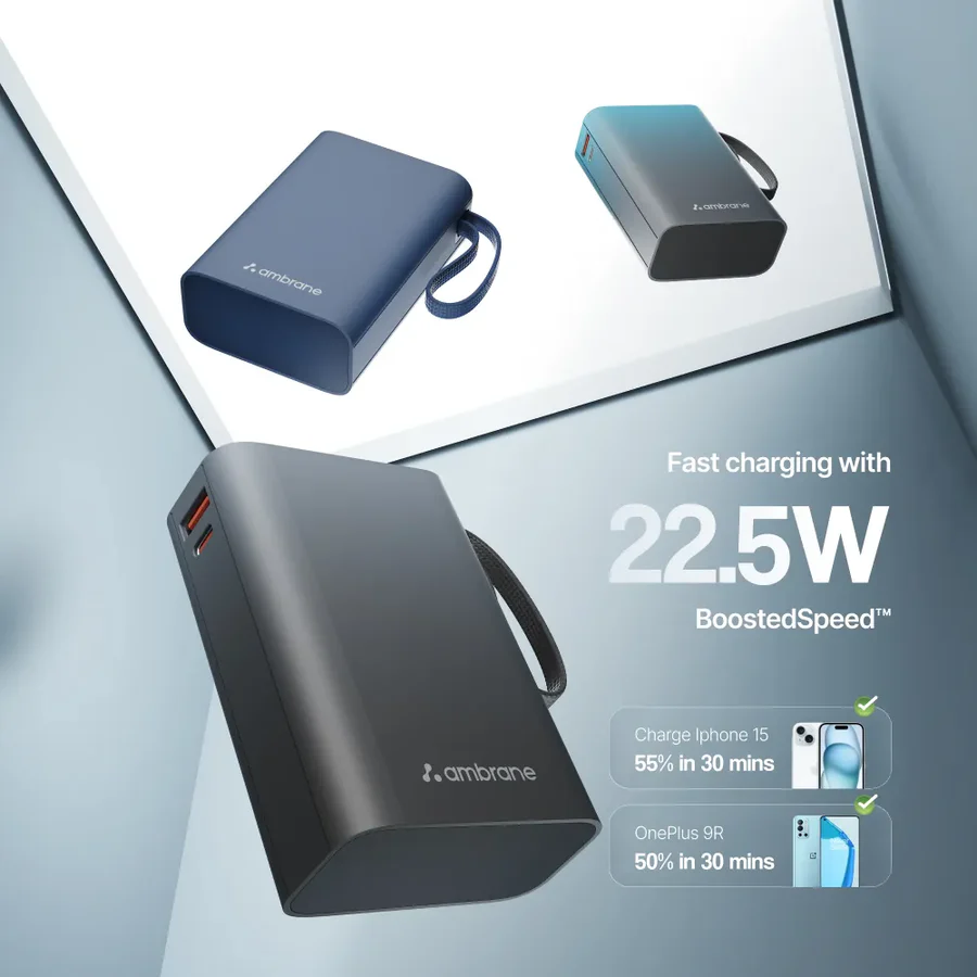 - Supports up to ~22.5 W output with Ambrane’s BoostedSpeed technology for quicker charging than standard power banks.