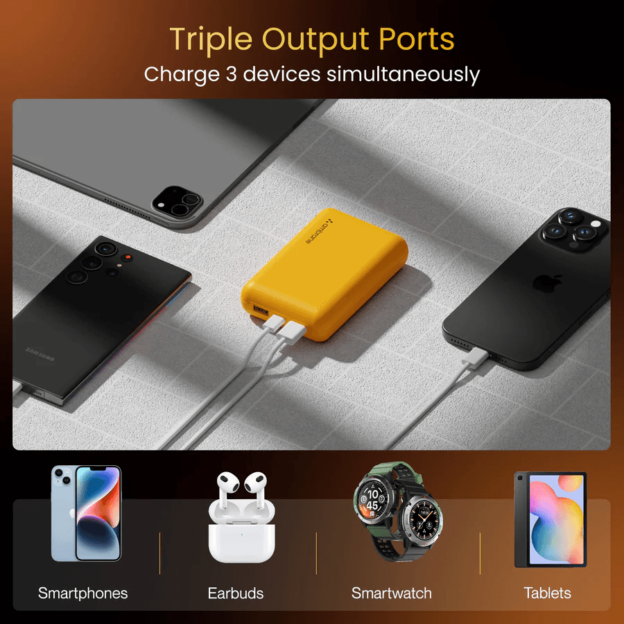 - Ports: 1 × USB-C + 2 × USB-A (can charge up to 3 devices simultaneously)