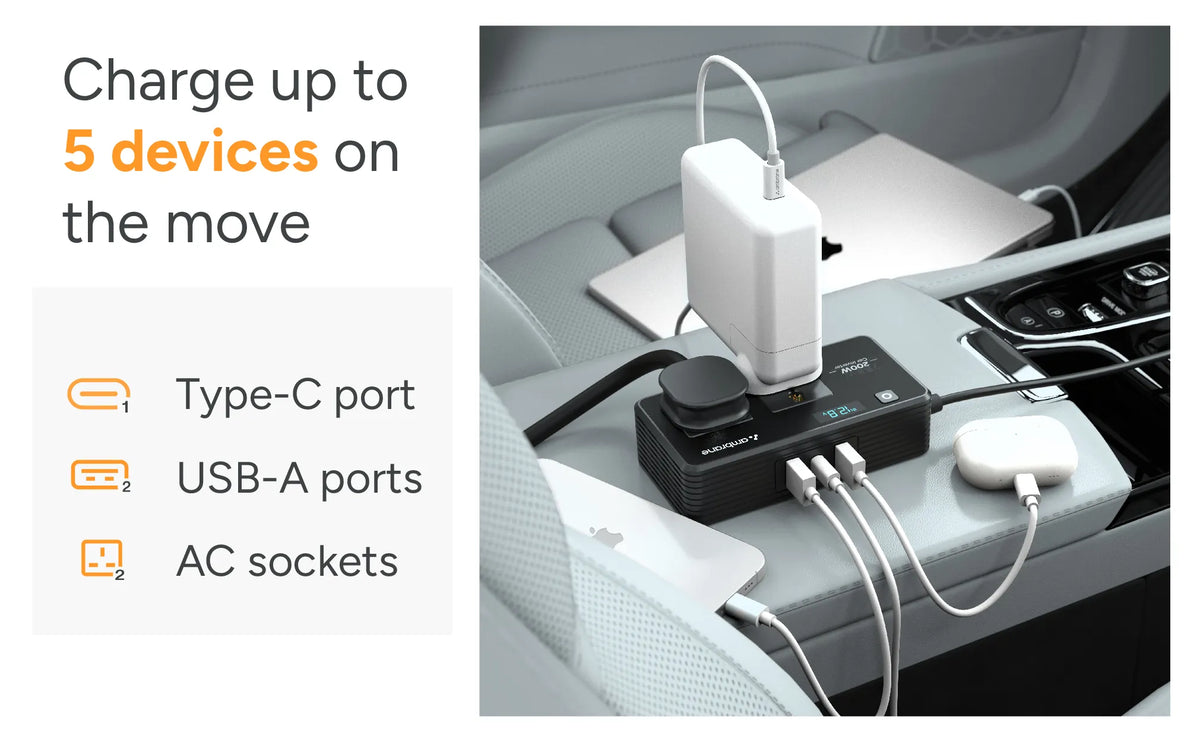 - Multiple charging: Charge up to 5 devices at once and keep the roadtrip adventures going in full-power.
