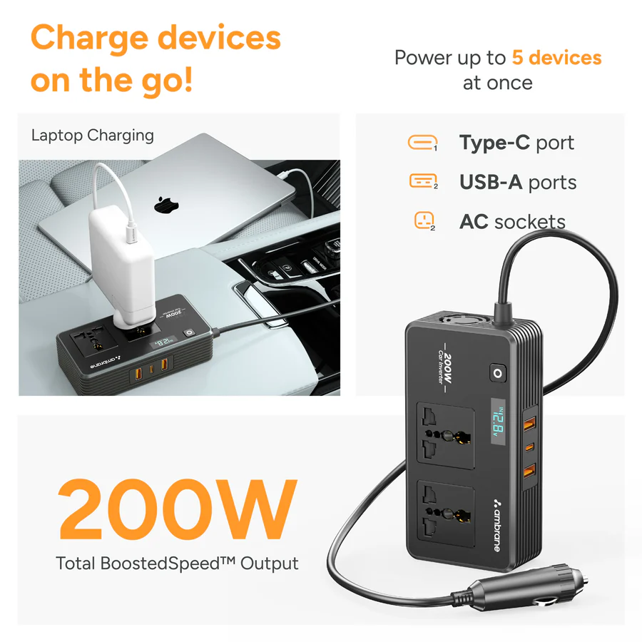 - Laptop Charging: Powers up your laptops with 2 powerful AC sockets