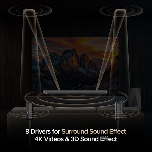 - 8 Drivers: Take a virtual adventure into the world of movies and series with Aavante Bar 5500DA. A total of 8 drivers pump out high-octane output for a surround sound watch session in your home just like a theatre.