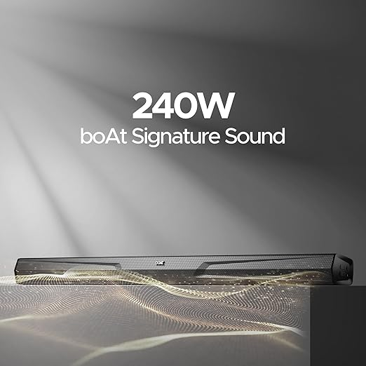 - Audio Output: 240 W RMS boAt Signature Sound — loud, immersive audio for movies, music & games