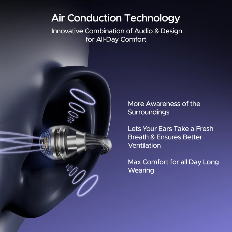 - Air Conduction Technology: Air Conduction technology in these earbuds combined with the open-ear design, delivers audio without blocking your ears. So, you can enjoy your playlist while also staying aware of your surroundings.
