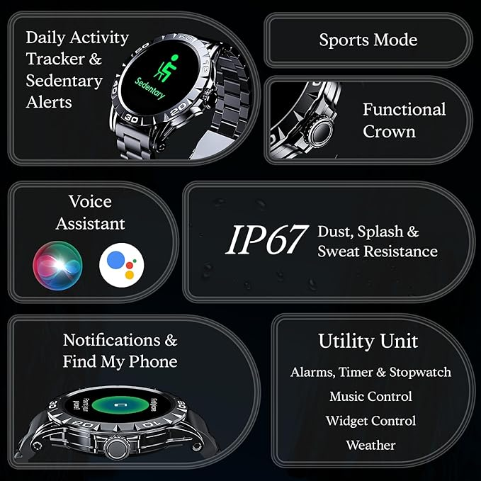 - Body Material: Premium metal body with a rotational functional crown for easy navigation.