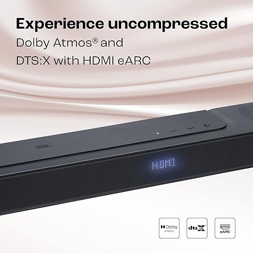 - Audio Formats / Features: Supports Dolby Atmos, DTS:X, and uses “MultiBeam™” surround-sound tuning for immersive 3D audio; includes dialogue-enhancement (for clearer speech during movies)