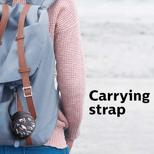- Ultra-Compact and Portable Design: The speaker is designed with a very small and lightweight body, making it easy to carry anywhere. Its pocket-size structure allows users to put it in a bag or even carry it in their hand while traveling, camping, or going outdoors.