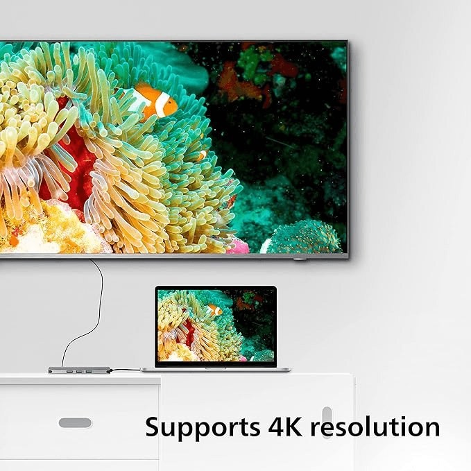 • Total: 8 ports (HDMI + 3×USB-A + USB-C PD + Ethernet + SD + MicroSD)
