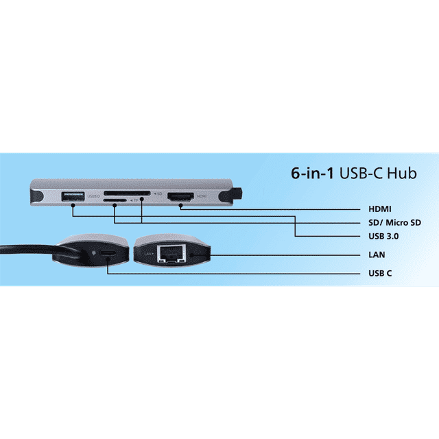 • 6 in 1 USB 3.0 Type C to USB 3.0/HDMI/RJ45/Micro SD/SD Card and Type C output Hub