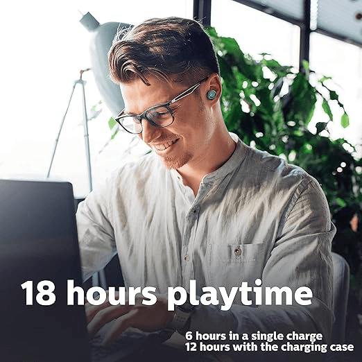 - Total 18 Hours Play Time: You get up to 6 hours play time from a single charge, plus 12 extra hours from a fully charged case